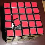 An original cube with a misaligned center. This cannot occur on the East Sheen or V-Cube puzzles.